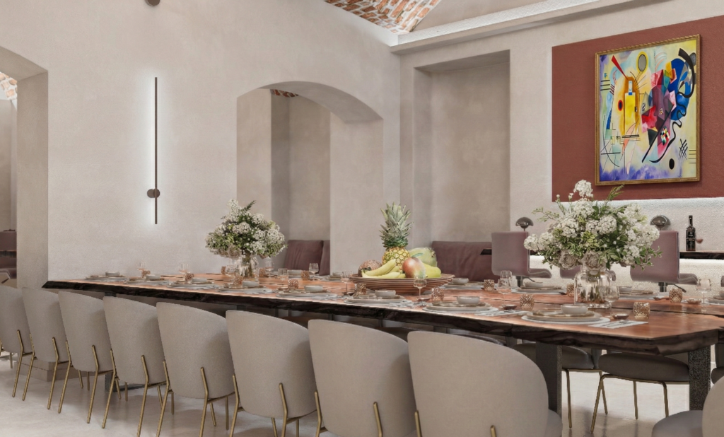 Un’estensione prestigiosa del tuo appartamento. Un ambiente esclusivo con cucina attrezzata (ideale per chef a domicilio) e un grande tavolo imperiale. Perfetto per ospitare cene private o concludere affari importanti in un contesto che comunica il tuo status, senza invadere la tua sfera domestica.